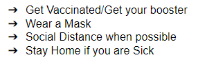Please continue to do anything that you can to slow the spread of this latest variant. This would be very beneficial to our health organizations and for those needing health services not related to the pandemic.