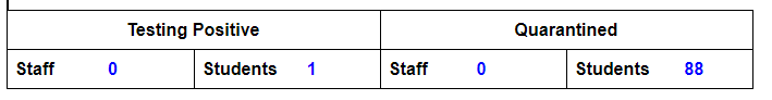 The number of COVID-19 cases this past week does show a decrease to 53.44 Current projections for next week will show this number will decrease to 45.47. As you can continue to see in the chart below, the numbers within our district still remain low.