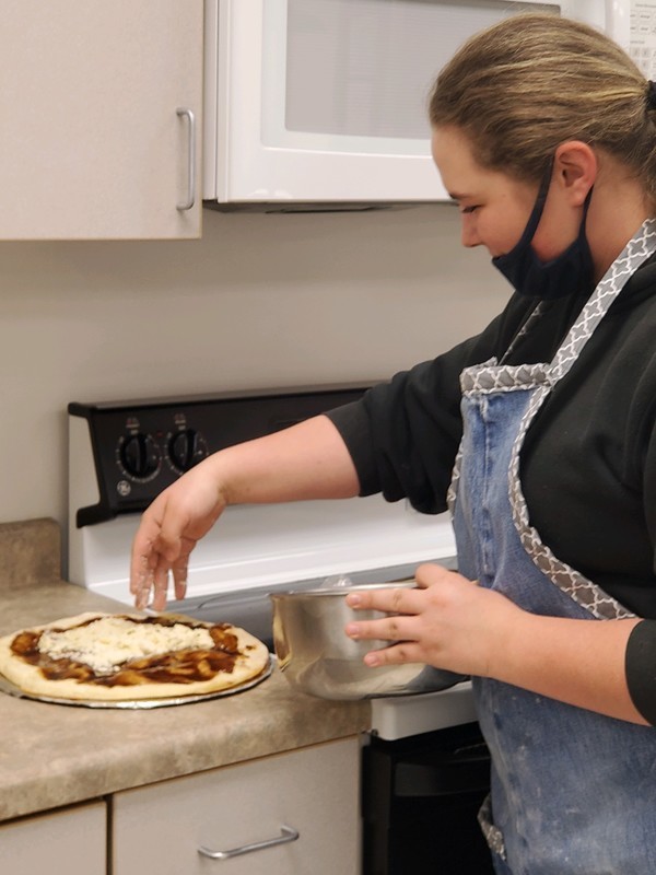 As part of the course, students participated in a Take and Bake Pizza Sale. Students took orders and then prepared and packaged 60 homemade pizzas! Over the course of the project, students learned about food cost, effective product packaging, efficiency, and teamwork to complete a large task.