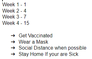 Also reported last week, many schools are now considering some type of masking mandate to slow down the transmission of the virus. Following all of the arrowed items below will slow down the virus but it will not stop it completely.