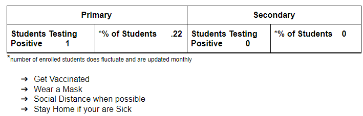 We did not have a Stearns County Public Health meeting last Thursday. They decided to go to an every other week format. We have been asked to pull our numbers directly from the JWolfin site for our numbers. In the latest comparable numbers to last year's metrics, we are now at 162.22. This marks a significant increase from last week. This bump may be because of people getting together over the MEA weekend. As reported last Thursday in a ranking of Stearns County school district positivity rates of 1 being the highest rate, Melrose is now at number 2.