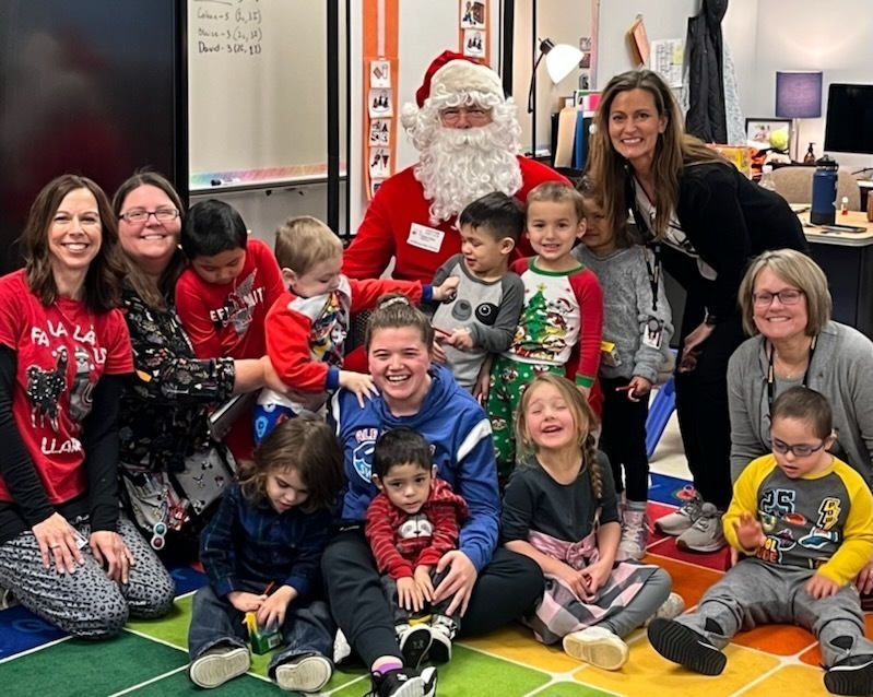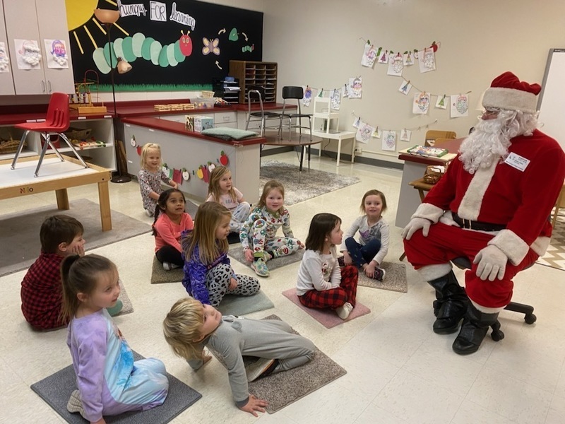 Yesterday Santa came to visit our preschool rooms. The children were excited to meet him! (It was also Pajama day!)