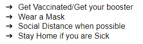 Please continue to do anything that you can to slow the spread of this latest variant. This continues to be very beneficial to our health organizations and for those needing health services not related to the pandemic.