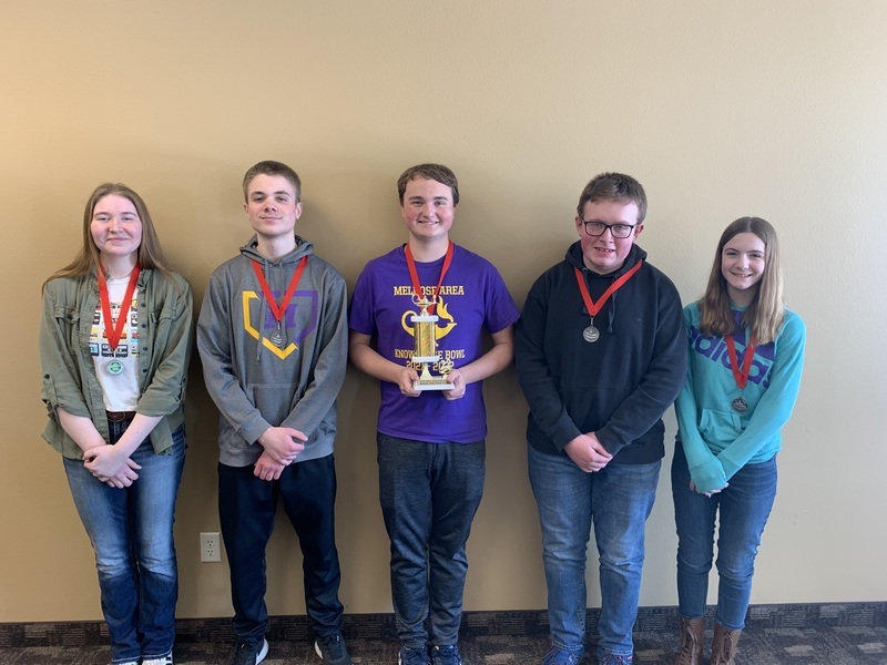 Congratulations to the Melrose Knowledge Bowl Teams that completed Conference play in Holdingford on Wednesday, March 9. Melrose Varsity teams finished first and second at the meet and earned the Conference Championship and Runner-Up Honors. Melrose J.V. finished third at the meet and earned second place in overall Conference season play. Melrose Varsity Teams will compete at North Branch on Tuesday, March 15 in the Section Meet vying for a spot to advance to the state tournament in April.