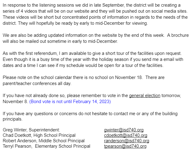 Superintendent Update 11-7-22