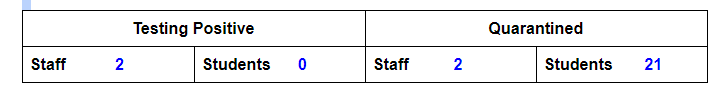 The Incident Command Team will continue reviewing the numbers on a weekly basis to determine any future shifts. For now, we will remain in-person/hybrid in grades K-5 and hybrid in grades 6-12. This may be shifting for the week of February 1-5.
